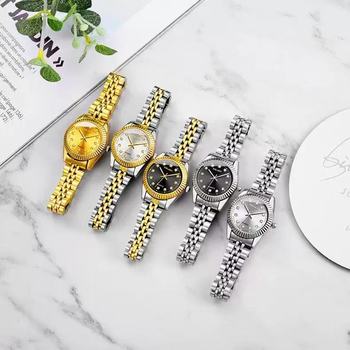 Montre en or à quartz avec bracelet en acier à face de diamant pour femmes boîtier en alliage de mode étudiant décontracté simple pour les couples